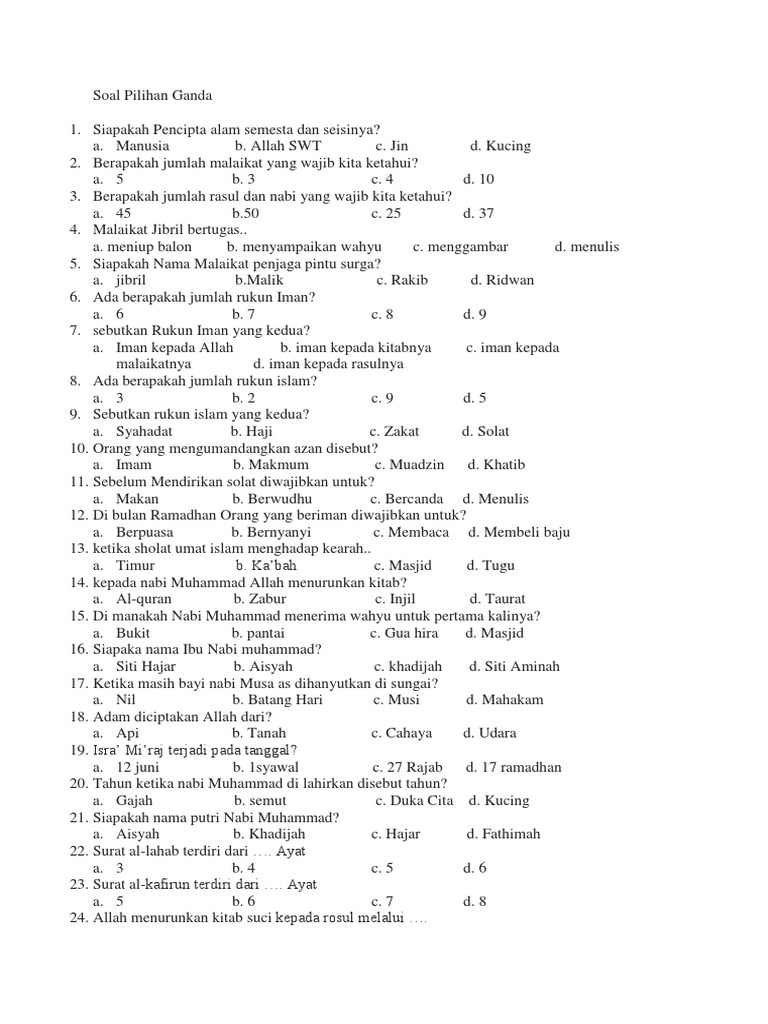 Kumpulan soal cerdas cermat agama islam pilihan ganda berikut ini adalah kumpulan contoh soal cerdas cermat agama yang dapat digunakan untuk menyelenggarakan kegiatan lomba cerdas cermat sd pilihan ganda dan jawabannya soal cerdas cermat pengetahuan umum smp soal cerdas cermat agama islam sma maupun soal cerdas cermat agama islam pesantren.