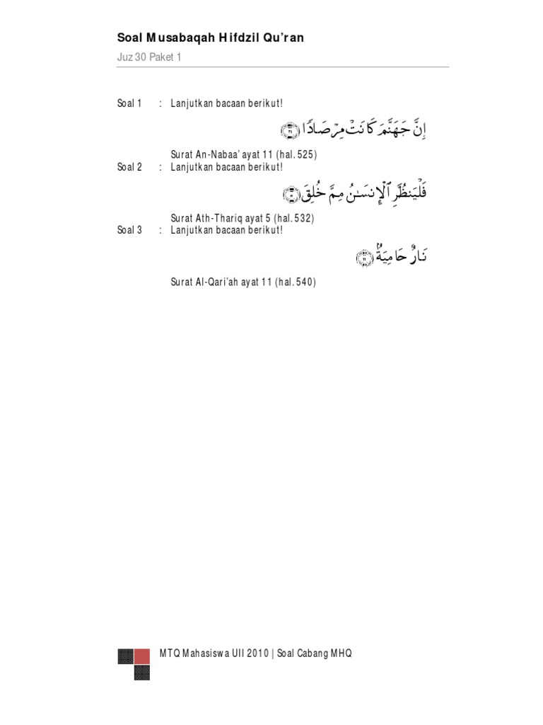 Kumpulan soal tahfidz juz 30 untuk mtq mhq atau cerdas cermat sumber dari : Soal soal tes hafalan juz amma jawabanku id. Lengkap 50 contoh soal uts bahasa inggris kelas 9 smpmts. Contoh soal tes dari kitab takrib tentang toharoh. Surat al falaq memliki sejarah turunnya sebagai berikut.