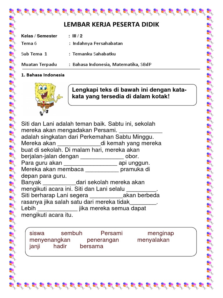 Lkpd Kelas 4 Tema 3 Subtema 2 Pembelajaran 2 Worksheet from files.liveworksheets.com Maybe you would like to learn more about one of these? We did not find results for: Check spelling or type a new query. Lkpd kelas 6 tema 1 subtema 1.