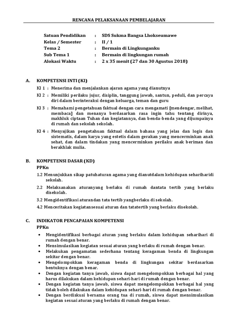 Rpp pkn kelas 2 sd semester 1 kegiatan awal a. Rpp pkn kelas 2, 1. Mengajak semua siswa berdoa sesuai dengan agama kegiatan inti a. Pendidikan kewarganegaraan kelas / semester : Rpp pkn sd kelas 2 reviewed by admin on december 17, 2010 rating: Contoh ini bisa anda jadikan acuan dalam membuat rpp satu lembar k13. Silabus pkn sd mi kelas 5 silabus rpp. 2 x 35 menit pelaksanaan : I / 1 materi pokok : 2x35 (1 kali pertemuan) hari, tanggal :jum'at, 07 maret 2013 i. Setiap pendidik atau guru kelas sekolah dasar berkewajiban menyusun rpp secara lengkap dan sistematis. Kemampuan guru dalam memfasilitasi pengalaman belajar yang berkesan melalui perencanaan yang tertuang di rpp kurikulum 2013 merupakan faktor keberhasilan pembelajaran. Download rpp kelas 2 sd kurikulum 2013 edisi revisi 2018 amongguru.com.
